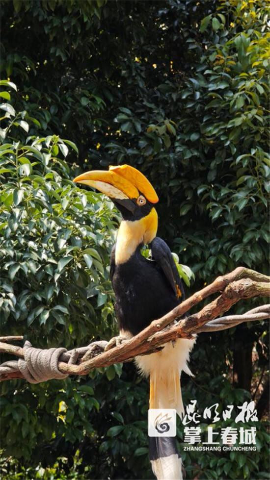 五一期间,园区的双角犀鸟新展区正式向公众开放,国家一级保护野生动物双角犀鸟也将隆重登场。双角犀鸟在我国境内主要分布在云南西部和西南部以及西藏东南部。栖息于海拔1500米以下的低山和山脚平原常绿阔叶林。主要以各种热带植物的果实和种子为食,也吃大型昆虫、爬行类、鼠类等动物性食物。双角犀鸟因栖息地破坏导致种群隔离以及大型营巢树的消失,加上一些地区的非法捕猎,野外种群数量日渐稀少。现被列入中国《国家重点保护野生动物名录》一级。